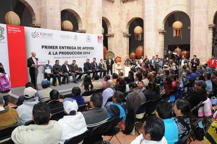 El gobernador del Estado, Fausto Vallejo Figueroa, entregó recursos para que artesanos de Michoacán adquieran materia prima, maquinaria y herramientas; con la ministración se beneficia a 143 artistas de 14 municipios, por un monto de 431 mil pesos.
