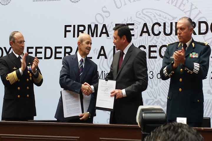 En el marco de la Firma del Acuerdo para el Apoyo Federal a la Seguridad de Michoacán, el secretario de gobernación Miguel Ángel Osorio Chong, anunció la profesionalización de los cuerpos policiacos en la entidad y una inversión de más de 200 millones de pesos para trabajos de prevención del delito.