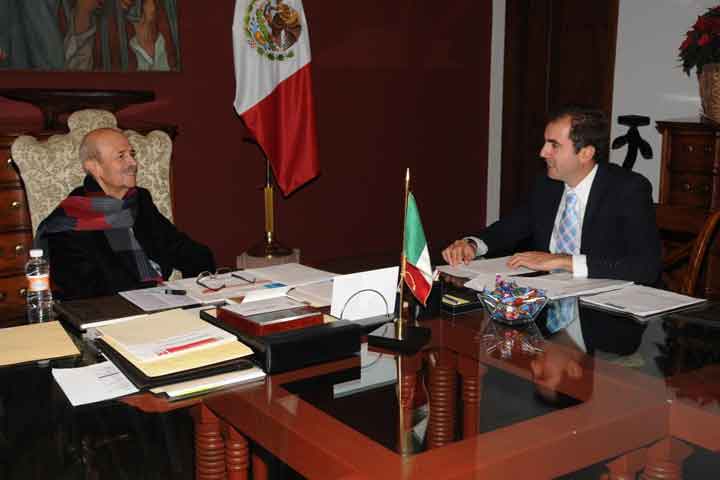 El gobernador Fausto Vallejo Figueroa, se reunió este lunes con el secretario de Desarrollo Agrario, Territorial y Urbano (SEDATU) y enlace del gobierno federal con Michoacán, Jorge Carlos Ramírez Marín, para evaluar el avance de los programas y apoyos que el Presidente Enrique Peña Nieto instruyó para nuestra entidad.