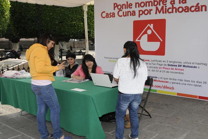 NOTICIAS 23/11/2013En busca de un nombreEl Sistema DIF Michoacán, presidido por Patricia Mora de Vallejo, convoca a la ciudadanía en general a que participe en la convocatoria para poner nombre a la Casa Cuna de Michoacán.
