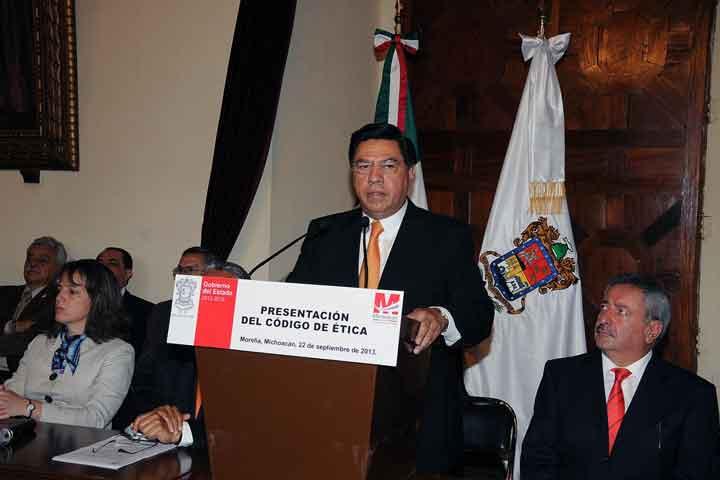 NOTICIAS 22/09/2013Cualquier conducta ilícita será sancionada, advierte ReynaDe manera voluntaria funcionarios públicos del gobierno del estado de Michoacán suscribirán el Código de Ética presentado este domingo por el secretario encargado de la política interna del estado, Jaime Mares y el gobernador interino, Jesús Reyna García.