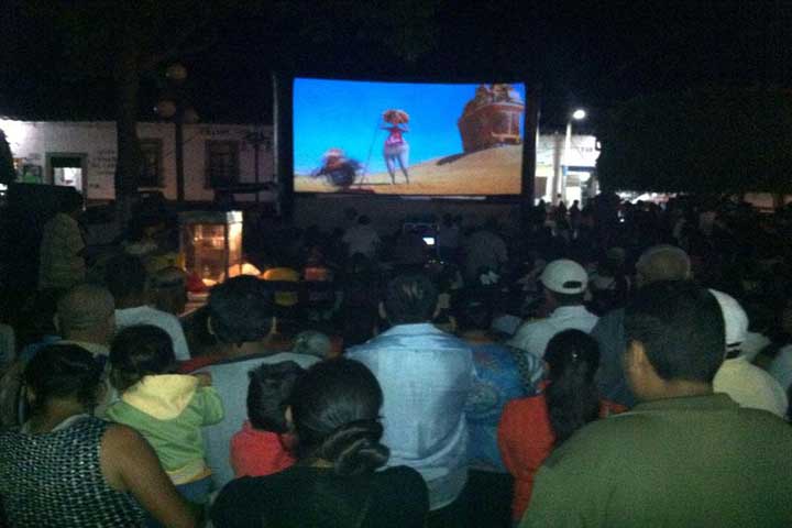 Más de 300 infantes de esta tenencia de Morelia disfrutaron de la función de Cine Móvil y de juguetes obsequiados por la Secretaría de Política Social de Michoacán (Sepsol), como parte de los festejos conmemorativos del Día del Niño.