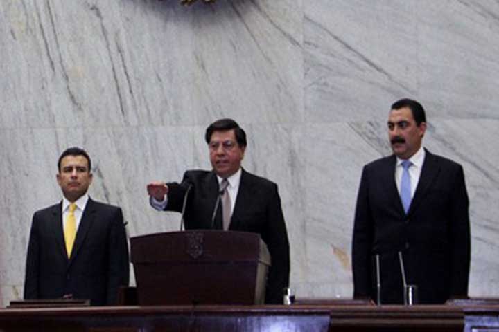 Jesús Reyna GarcÃa protesto en el salón de plenos del Congreso del estado como gobernador interino de Michoacán ante la clase polÃtica que se dio cita al lugar para atestiguar el momento.