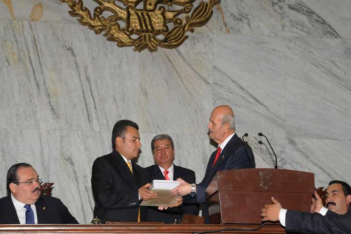 En estos momentos da inicio la sesión solemne del Congreso del Estado para el primer informe de actividades del gobernador del estado, Fausto Vallejo Figueroa.