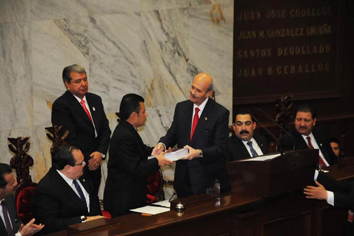 Dentro de su informe de gobierno el mandatario estatal, Fausto Vallejo Figueroa, afirmó que nadie está por encima de la ley. Anunció que ya se presentaron 2 denuncias penales contra quienes resulten responsables de las afectaciones al erario público de la entidad y 5 denuncias más que se presentarán en los próximos días.