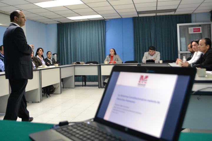 Los enlaces jurídicos de la administración pública estatal y directores de las universidades públicas y privadas que imparten la carrera de derecho en el estado, participaron en la charla denominada: "La Reforma Constitucional en Materia de Derechos Humanos", impartida por la Unidad especializada en la materia de la Secretaría de Gobierno.