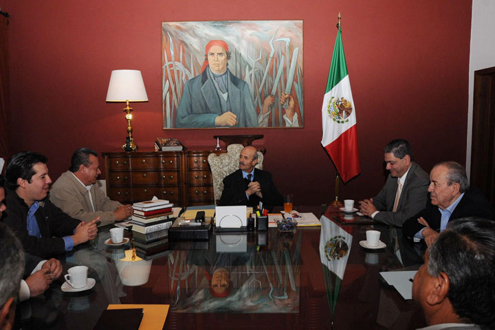 El gobernador de Michoacán Fausto Vallejo Figueroa, encabezó reuniones de trabajo con los presidentes municipales de Sahuayo, Francisco Sánchez Sánchez y de Uruapan, Aldo Macías Alejandres, a quienes reiteró su vocación municipalista y la voluntad de su gobierno de coordinarse estrechamente con los ayuntamientos, para emprender de manera conjunta más obras y acciones en beneficio de los michoacanos.
