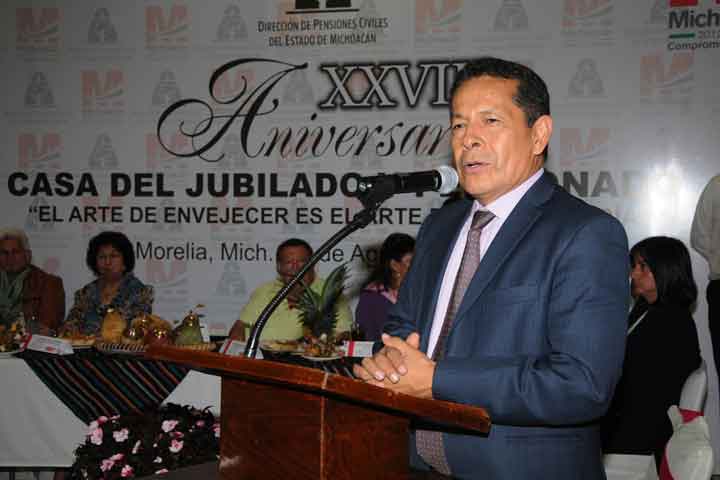 Durante el vigésimo octavo aniversario de la Casa del Jubilado y Pensionado, el director de Pensiones Civiles del estado, Domingo Bautista Farías, aseguró que uno de los compromisos de este gobierno es darle a los adultos mayores una mejor condición de vida, ya que con su trabajo de largos años contribuyeron al crecimiento de Michoacán.