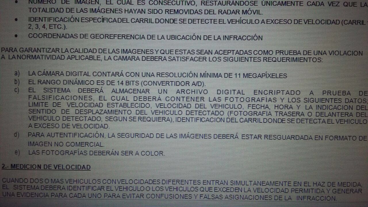 MAY 012016 Cuatro empresas registraron su participación en la Licitación Pública Local No. CA-LPL-SRCMVED/06/2016/61402 para la Contratación de un Sistema para la Regulación y Control de Movilidad Vehicular Electrónica Digitalizada; Inteltrafico S.A. de C.V., Banku Procesadora Mercantil S.A. de C.V., Autotraffic S.A. de C.V., Proyectos de Ingeniería Seguridad y Abastecimiento S.A. de C.V. Las bases y la competencia. Las bases que emitió y puso a la venta la Secretaría de Administración a través de la Coordinación del Comité de Adquisiciones del H. Ayuntamiento de Morelia los días 20, 21 y 22 de abril resultan coincidentes en sus artículos fundamentales, una fiel copia de los contratos públicos que por adjudicación directa obtuvo en diferentes municipios como el de San Luis Potosí la empresa Inteltrafico S.A. de C.V. (documentos públicos que se encuentran en internet contrato-inteltrafico.slp.pdf). Uno más coincidente es el documento que se describe como Anexo Técnico de la Ciudad de México y que se encuentra disponible en la página de CDMX en la sección de la Secretaria de Seguridad Pública en Reglamento de Tránsito. Las coincidencias de redacción entre las bases para licitación que presentó y cobró el Ayuntamiento de Morelia son exactamente idénticas al Anexo Técnico de la Ciudad de México. Lo que más se resalta de ambos documentos es que en el A N E X O Nº 1 de licitación pública local Nº CA-LPL-SRCMVED/06/2016/61402 para la contratación de un Sistema para la Regulación y Control de Movilidad Vehicular Electrónica Digitalizada en su marco técnico para la primera etapa y que corresponde a la descripción del servicio en el subtema ESPECIFICACIONES PARA EL SUMINISTRO DEL EQUIPAMIENTO Y SERVICIO DE OPERACIÓN DE LOS SISTEMAS PARA LA SEGURIDAD VIAL, EN LAS VIALIDADES DEL MUNICIPIO DE MORELIA PARA EN EL MONITOREO DE EXCESO DE VELOCIDAD Y EL CONTROL DE LUZ ROJA, SE REQUIERE? las mismas especificaciones de las cámaras Redflex y las mismas especificaciones que en su anexo técnico agregó la empresa ya que es con las que ha trabajado en diversos municipios del país desde hace dos años. En su página, Inteltráfico SA de CV se ostenta como representante exclusivo de la marca australiana Redflex, con sede en Guadalajara y a la que califica como "proveedor líder de los principales sistemas digitales de última generación de tráfico para aplicación y soluciones, incluyendo la aplicación de luz roja, control de velocidad fijo y móvil, reconocimiento automático de matrículas (ANPR) y promedio de velocidad". ¿Quién redacto las bases? Es importante subrayar que el área responsable de emitir las bases es directamente la Secretaría de Administración del Ayuntamiento de Morelia a petición de una dependencia interesada y relacionada con el tema, que en este caso recae en la figura de la Secretaría de Innovación Gubernamental, a cargo de Antonio Plaza Urbina Eso no importa porque ni siquiera se ocupó de un especialista en el tema para poder dictar las especificaciones de este intento de licitación, todo fue un "copiar y pegar". Cabe destacar que como se observa más adelante en las gráficas que se exponen, la redacción sobre las especificaciones técnicas son exactamente iguales al ANEXO TÉCNICO DE LA CIUDAD DE MÉXICO, el cual opera Inteltrafico S.A. de C.V. Pero más alarmante es que las especificaciones directas de las cámaras que el ayuntamiento de Morelia específica para su uso en el monitoreo para la recaudación de las foto infracciones son exactamente las mismas de las cámaras Redflex. En todos sus contratos públicos- la empresa especifica las mismas condiciones que aparecen en las bases que emitió el Ayuntamiento de Morelia, aunque en esos contratos en todos- la cuota para la empresa va de 44.8 al 46 por ciento de los recaudado que ellos mismos demarcan en 30 mil multas mensuales, cifra mínima. De acuerdo a lo derivado de la Junta de Aclaraciones celebrada el pasado 28 de abril a las 11:00 horas en la Sala de Juntas de la Secretaria de Administración del Ayuntamiento de Morelia y en la que no estuvo presente el titular de la dependencia, los representantes de las empresas, entre otras aclaraciones, expusieron la relativa a las especificaciones técnicas del equipo, la respuesta de la autoridad convocante fue clara "apegarse a las bases". La próxima reunión se realizará el viernes 6 de mayo con la Apertura Técnica, podría pensarse que solo se presentará la empresa que cuenta con las normas del juego que marco puntualmente el Ayuntamiento de Morelia, por ser un traje a la medida y contar con la exclusividad de los aparatos que contienen las especificaciones que pide la autoridad municipal.
