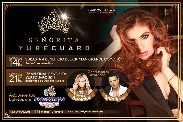 NOTICIAS 13/05/2016Ya viene Señorita YurécuaroDebido al éxito que ha tenido el certamen Señorita Yurécuaro en su primera edición este año el evento se prepara para realizarse de una manera más ambiciosa en cuanto a la producción del evento se refiere, pues además de mostrar las mujeres hermosas que en se presentarán el concurso contará con el apoyo de grandes personalidades quienes le darán realce al espectáculo.