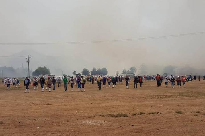 Más de 200 trabajadores de tres procesadoras de frutas de este municipio de Jacona, fueron evacuados por personal de Protección Civil en coordinación con elementos de la Policía Militar, luego de que el incendio de maleza y pastizal provocó una enorme columna de humo que se vio a varios kilómetros a la redonda, y afectó a algunos empleados y bomberos.