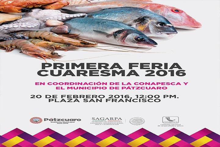 NOTICIAS 19/02/2016Este 20 de febrero Primera Feria Estatal de Cuaresma en PátzcuaroEl Ayuntamiento de Pátzcuaro que encabeza VÃctor Manuel Báez Ceja, a través de la Dirección de Desarrollo Rural y en coordinación con la Subdelegada de Pesca en el Estado, Blanca Cielo Margarita Corona, realizarán la "Primera Feria Estatal de Cuaresma 2016".