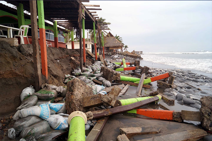 De acuerdo con algunos lugareños el oleaje reblandeció la arena y a causa de ello los cobertizos de los negocios quedaron perjudicados, además socavaron las bases de los inmuebles const... Ver más...