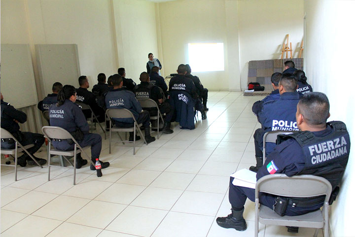 Por instrucciones del Presidente Municipal, Víctor Manuel Báez Ceja, la Dirección de Seguridad Pública Municipal, está llevando a cabo una serie de cursos y talleres de capacitación para los elementos adscritos a dicha dependencia.