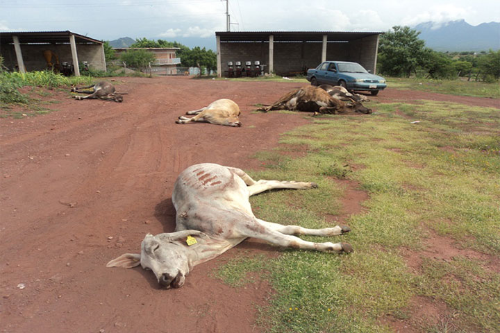 NOTICIAS 15/09/2015Pierde ganadero casi medio millón de pesos al morir 19 de sus resesUn ganadero tuvo pérdidas de casi medio millón de pesos, luego de morir 19 de sus reses, mismas que creía habían sido envenenadas, pero entonces un veterinario confirmó que habían perecido por comer en exceso, pues tenían dos días sin probar alimento, según se conoció durante la labor periodística.