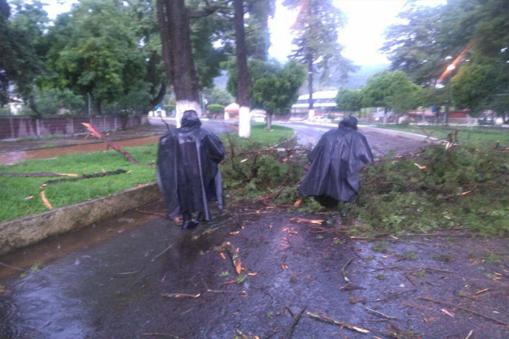 La fuerte lluvia y granizada que cayó la tarde - noche de este sábado en esta localidad ocasionó alerta entre la población, ya que se presentó la caída de un árbol y las ramas de otros, además de encharcamientos, razón por la cual fue cerrada la avenida Lázaro Cárdenas, que es una de las principales del lugar.