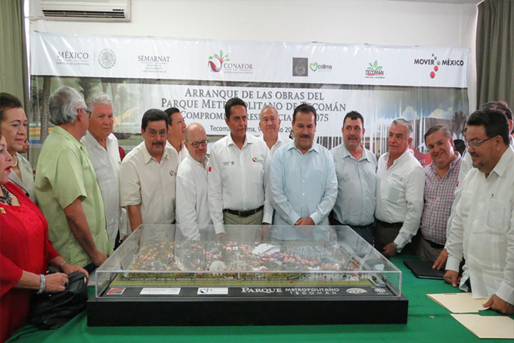 NOTICIAS 09/06/2015Inauguran trabajos del Parque Metropolitano de Tecomán Con un vocacionamiento directo hacia la promoción de la cultura ambiental y forestal, este 9 de junio dieron inicio los trabajos para la construcción del Parque Metropolitano de Tecomán, Colima (uno de los compromisos adquiridos por el Presidente de la República, Enrique Peña Nieto, y que se cumple operativamente bajo la supervisión del Director General de la Comisión Nacional Forestal (CONAFOR) Jorge Rescala Pérez).