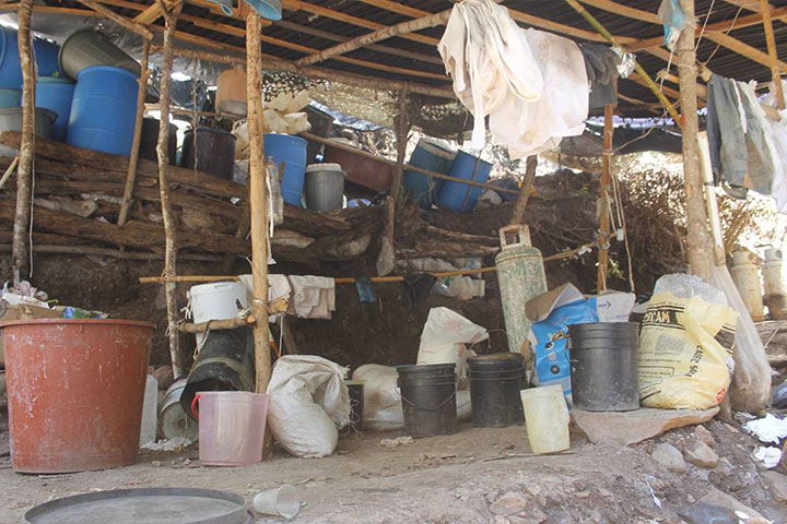 En una movilización del Ejército Mexicano fue reventado otro narcolaboratorio en esta región de la Tierra Caliente michoacana, ahora en las inmediaciones de este municipio de Buenavista, donde la narcococina estaba oculta en una cañada.