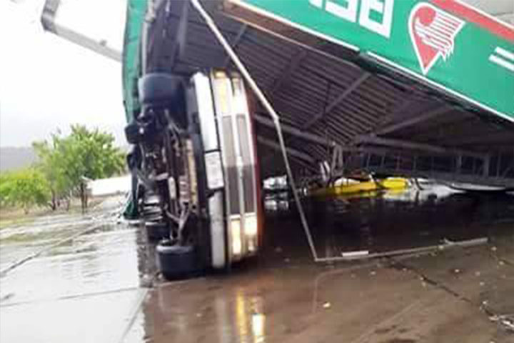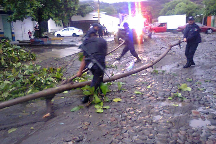 El meteoro se dejó sentir al filo de las 5:30 de la tarde acompañado de fuertes rachas de viento y abundantes precipitaciones pluviales, y a su paso provocó el desplome de la techumbre de la gasolinera que se ubica a un costado del Colegio... Ver más...