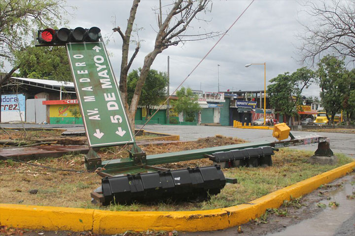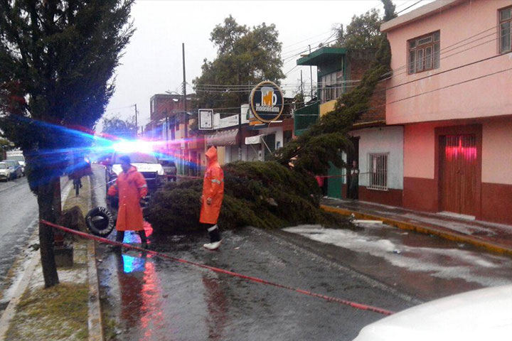 El derribo de estructuras metálicas y de árboles, además de vehÃculos dañados, apagones y caÃda de granizo, es el saldo preliminar de la tromba que esta tarde azotó la región de Tierra Caliente.