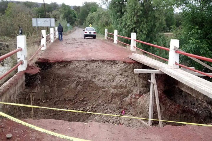 Lo anterior se supo durante el trabajo noticioso, en el cual trascendió que las fuertes lluvias causaron que la corriente del afluente terminara por tirar el puente de la rancherÃa.
