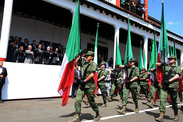 NOTICIAS 08/03/2015Ario recibe su primer desfile militarEn un evento sin precedente que congregó a decenas de familias, Ario de Rosales recibió su primer desfile cívico-militar con motivo del Bicentenario de la instalación del Primer Supremo Tribunal de Justicia, que desde el portal de Palacio Municipal presenciaron el gobernador Salvador Jara Guerrero y el general Felipe Gurrola Ramírez, mando especial para la seguridad en Michoacán, acompañados de los titulares de los poderes Judicial y Legis... Ver más...