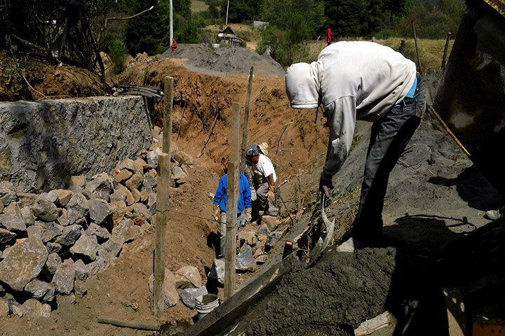 La actual administración municipal que preside el alcalde Simón Vicente Pacheco, lleva a cabo la construcción de un colector pluvial en la barranca que divide prácticamente en dos al barrio de Santo Santiago, a la altura del lugar conocido como Los Pocitos, en esta población, con una inversión de dos millones de pesos aportados por la federación y el municipio, obra que lleva un avance del 50 por ciento aproximadamente.