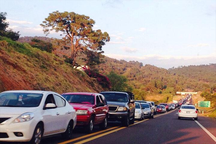 De acuerdo al último reporte, las filas de automóviles varados eran de varios kilómetros en ambas direcciones. Los manifestantes permiten la el paso de vehículos particulares cada 15 minutos.