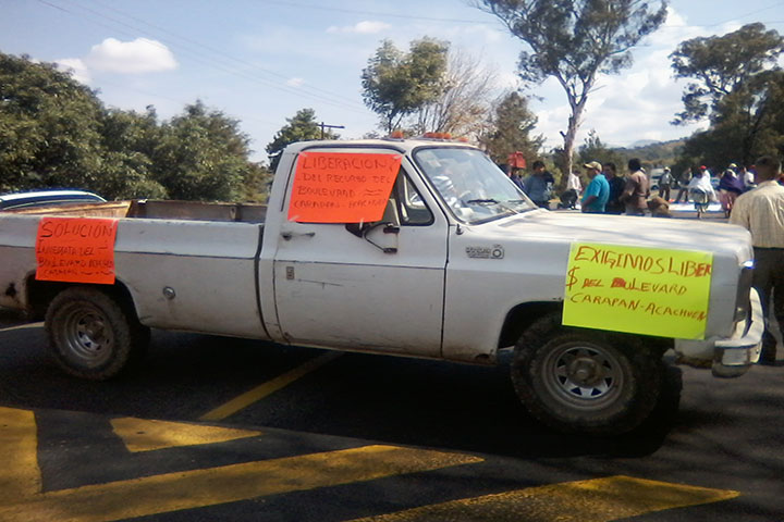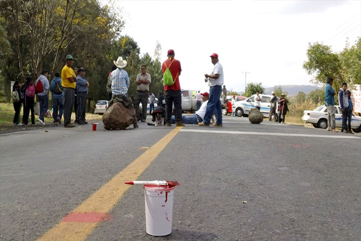 Un grupo de personas de la Cañada de los Once Pueblos, en esta región de la Meseta Purhépecha, bloquearon la carretera federal a la altura de la comunidad de Ichán; los manifestantes exigen la aplicación del presupuesto gestionado por diputados antorchistas, para la construcción de un boulevard que intercomunicará a dichas poblaciones.