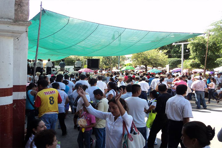 Maestros de la región de Tierra Caliente se reunieron en la plaza principal de esta ciudad de Huetamo, donde instalaron un templete y consecutivamente invitaron a los habitantes para apoyar a los familiares de los 43 desaparecidos normalistas de Ayotzinapa.