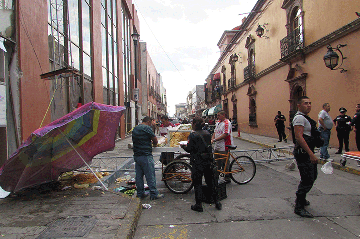 El hecho fue al filo de las 17:30 horas de este sábado, en la esquina formada por las calles Morelos y Aquiles Serdán, a las afueras del Banco Bancomer, ubicado frente a la Plaza Principal, de esta localidad.