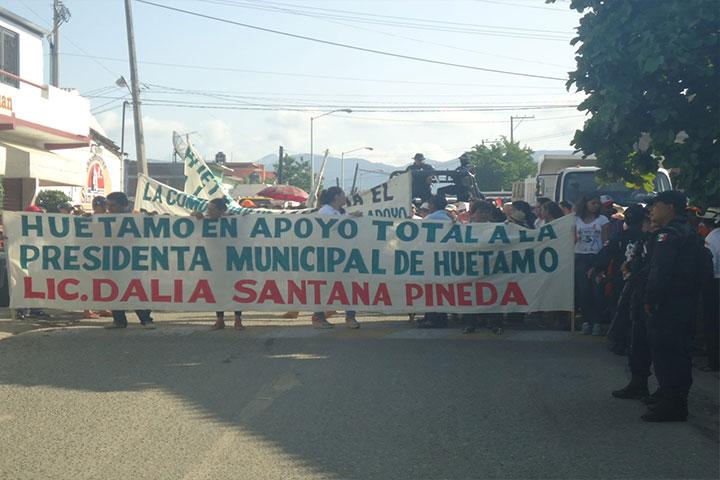 NOTICIAS 25/08/2014Marchan 3 mil huetameños en apoyo a su alcaldesaUn contingente de más de 3 mil personas a las que se sumaron transportistas, camioneros, campesinos de todas las comunidades, comerciantes y trabajadores del ayuntamiento, arrancó poco después de las 09:00 horas de este lunes de la avenida Madero para marchar por las principales arterias en apoyo a su alcaldesa Dalia Santana Pineda afirmando que es inocente.