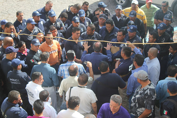Ante la falta de equipamiento y de armamento, los policías de este municipio salieron a las calles a manifestarse en contra del alcalde, Francisco Sánchez, a quien le exigieron mejores condiciones laborales.