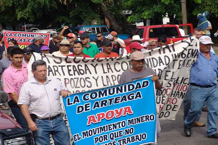Alrededor de un millar de trabajadores de diversos sectores relacionados con la actividad minera de los estados de Michoacán y Guerrero se manifestaron este mediodía en una marcha pacifica por la reactivación de la actividad económica y minera.