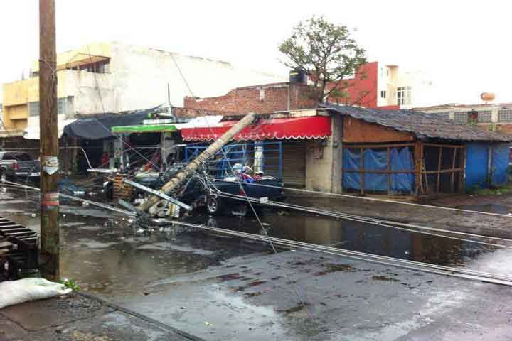 Esto ocurrió minutos antes de las 18:00 horas, en la calle Leonardo Castellanos y Apatzingan, justo en el Mercado Hidalgo, donde a consecuencia de los ventarrones también... Ver más...
