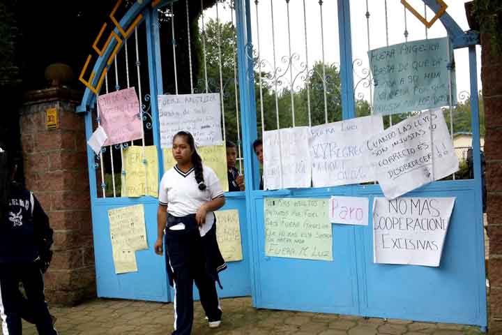 Los estudiantes cerraron las puertas e impidieron el acceso a los maestros; colocaron cartulinas con leyendas co... Ver más...