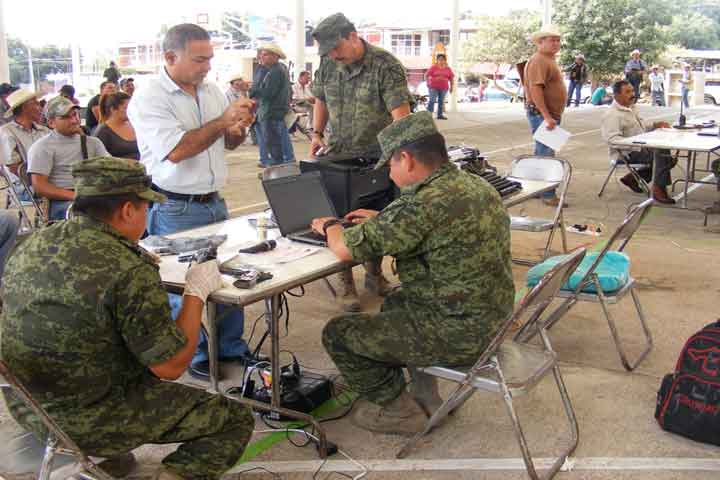 La Secretaría de la Defensa Nacional (Sedena), a través de su personal de la 43 Zona Militar, con sede en la ciudad de Apatzingán, comenzó este lunes el registro de armas de los grupos de Autodefensas de Los Reyes, Tingüindín, Tocumbo y Cotija, adelantando el programa que había sido anunciado por el Comisionado para la Seguridad y el Desarrollo Integral de Michoacán, Alfredo Castillo Cervantes, acción que tomó por sorpresa a los integ... Ver más...