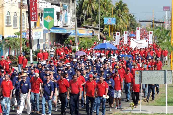 Cientos de obreros afiliados a la sección 271 del Sindicato Nacional de Trabajadores Mineros, Metalúrgicos y Similares de la República Mexicana marcharon en este puerto, para conmemorar a sus dos colegas muertos durante un desalojo encabezado por la Policía Federal y Estatal en 2006, de las instalaciones de la entonces empresa Siderúrgica Lázaro Cárdenas Las Truchas (Sicartsa), hoy ArcelorMittal.