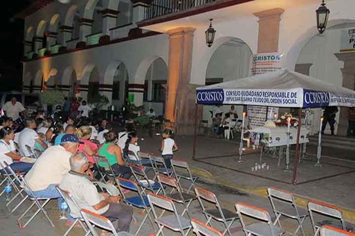 Uno de los 14 cuerpos que fueron localizados hace dos meses en fosas clandestinas de la comunidad de El Alcalde, en este municipio, es velado esta noche frente a la Presidencia Municipal en un funeral que han organizado los CCRISTOS para desagraviar a las vÃctimas, y exigir justicia para ellas y sus familias.