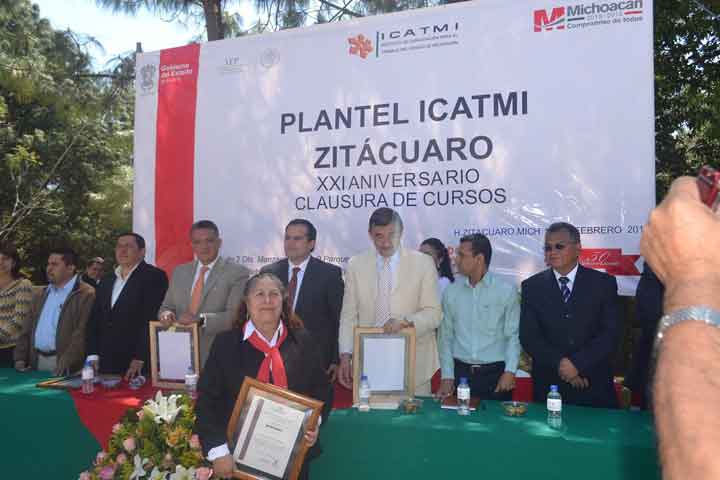 Con la entrega de constancias de terminación de cursos a 150 personas, el Instituto de Capacitación para el Trabajo en el Estado de Michoacán (ICATMI), plantel Zitácuaro festejó su XXI Aniversario
