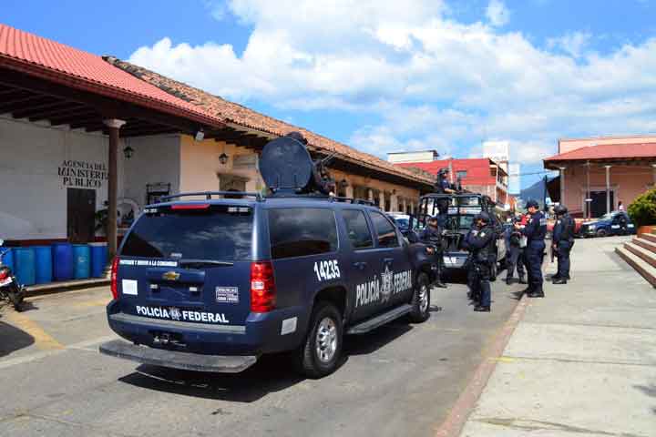 Desde la tarde del pasado miércoles, alrededor de 18 camiones tipo Mercedes Benz y 13 camionetas Cheyenne de la milicia llegaron a esta población, seguidas de tres autobuses y una ambulancia de la Policía Federal (P... Ver más...