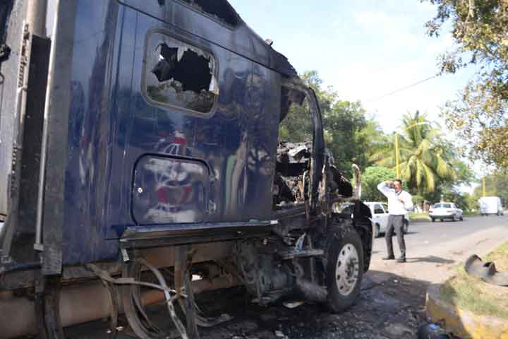 Un camión blindado, (Rinoceronte), de la PolicÃa Federal, al igual que más de 10 vehÃculos particulares, entre camiones torton, tráiler y taxis, quedaron prácticamente inservibles y aún se encuentran, este sábado, a las orillas de los lugares en donde habÃan sido atravesados para evitar la circulación de las fuerzas castrenses, de los marinos y de los ministeriales.