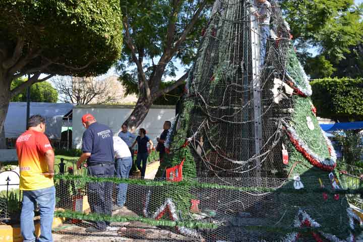 Un árbol navideño colocado por el Ayuntamiento local en la plaza principal de esta población, se incendió la tarde de este sábado, luego de que presuntamente algunos menores de edad le arrojaran fuegos pirotécnicos, de acuerdo con la versión dada por socorristas locales; incidente que no dejó víctimas humanas que lamentar.
