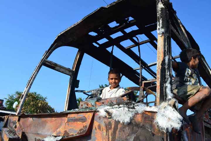 Luego de la emboscada que sufrieron policías federales en la carretera Apatzingán-Cuatro Caminos, a la altura de los poblados de Las Yeguas y San Antonio, en esta demarcación, en el lugar de los hechos ya sólo quedaron los estragos de la batalla: Un autobús de pasajeros completamente calcinado donde viajaban los oficiales agredidos, dos de los cuales murieron y al menos 15 que resultaron lesionados; todos ellos se retiraban de esta ciudad ... Ver más...