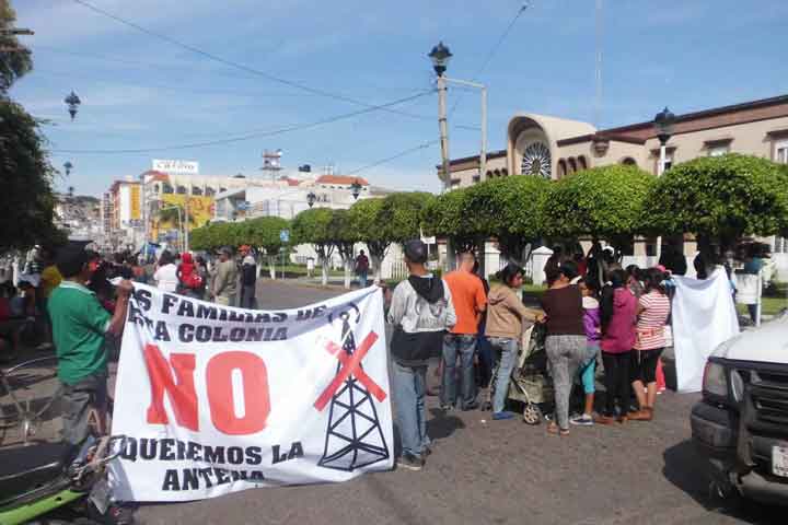 Ya son varias las ocasiones que vecinos de la Colonia San Isidro se manifiestan por la instalación de una antena de telecomunicaciones que fue postrada a metros de sus viviendas, mismas que según ellos se han visto afectados con problemas de salud, sobre todo las enfermedades van directas a sus hijos que padecen alguna enfermedad.