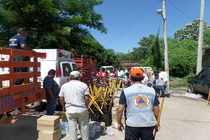 Un lote de 800 despensas, 800 kits de limpieza y 800 kits de aseo personal, así como colchonetas, agua embotellada y cobijas entregó la Secretaría de Seguridad Pública, a través de la Dirección de Protección Civil del Estado, a comunidades de municipios de Tierra Caliente como parte de los apoyos que se hicieron llegar por medio del Fondo Nacional de Desastres (FONDEN).