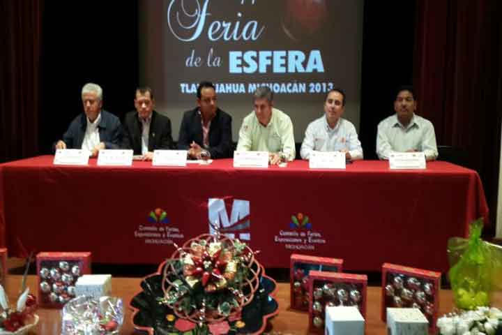 NOTICIAS 03/10/2013Buscarán mejores canales de comercialización para esferas de TlalpujahuaCon el compromiso de buscar mejores canales de comercialización para los fabricantes de esferas en Tlalpujahua, así como con la tarea de construir una plaza artesanal permanente, el gobernador del estado, Jesús Reyna García, inauguró la décimo cuarta edición de la Feria de la Esfera.