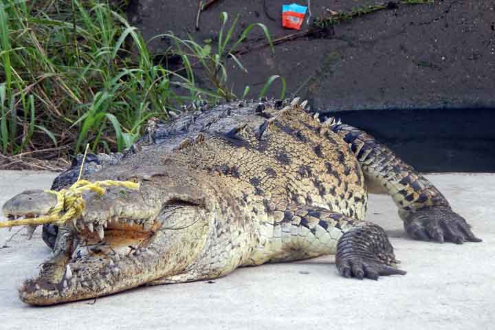 Un cocodrilo de más de tres metros de longitud, apareció en un canal de aguas negras de una zona urbana de Lázaro Cárdenas, frente a las instalaciones de Cinemex, el cual fue capturado por elementos de Bomberos Municipales y llevado a su hábitat natural donde fue liberado.