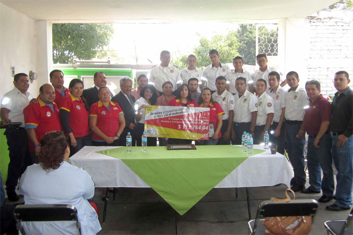 Este lunes el Cuerpo de Bomberos Voluntarios, Rescate y Salvamento del Estado de Michoacán, recibió un cheque por 113 mil 764 pesos gracias a un redondeo hecho en una cadena de tiendas de auto servicio durante seis meses, acción que beneficiará directamente a los zamoranos y a los habitantes del municipio.