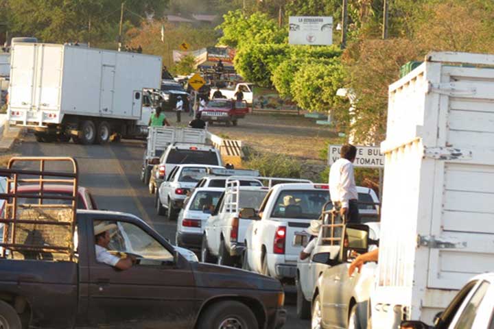 Varios bloqueos se registraron en la carretera Buenavista Tomatlán-Apatzingán, donde supuestos integrantes de las Guardias Comunitarias atravesaron camiones y automóviles al parecer en protesta contra el apaciguamiento que la autoridad quiere poner a su movimiento, al pretender aparentemente desaparecerlos y suplirlos con patrullajes de las Fuerzas Federales.